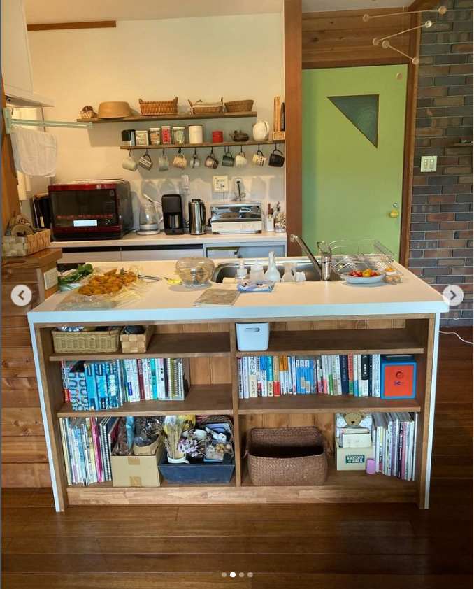 奥行きのあるカウンターにして、下部を本棚にしました。