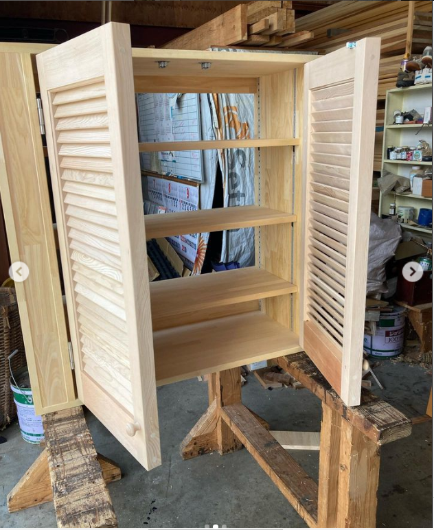 下駄箱の建具、既製品のルーバー建具を加工しました。