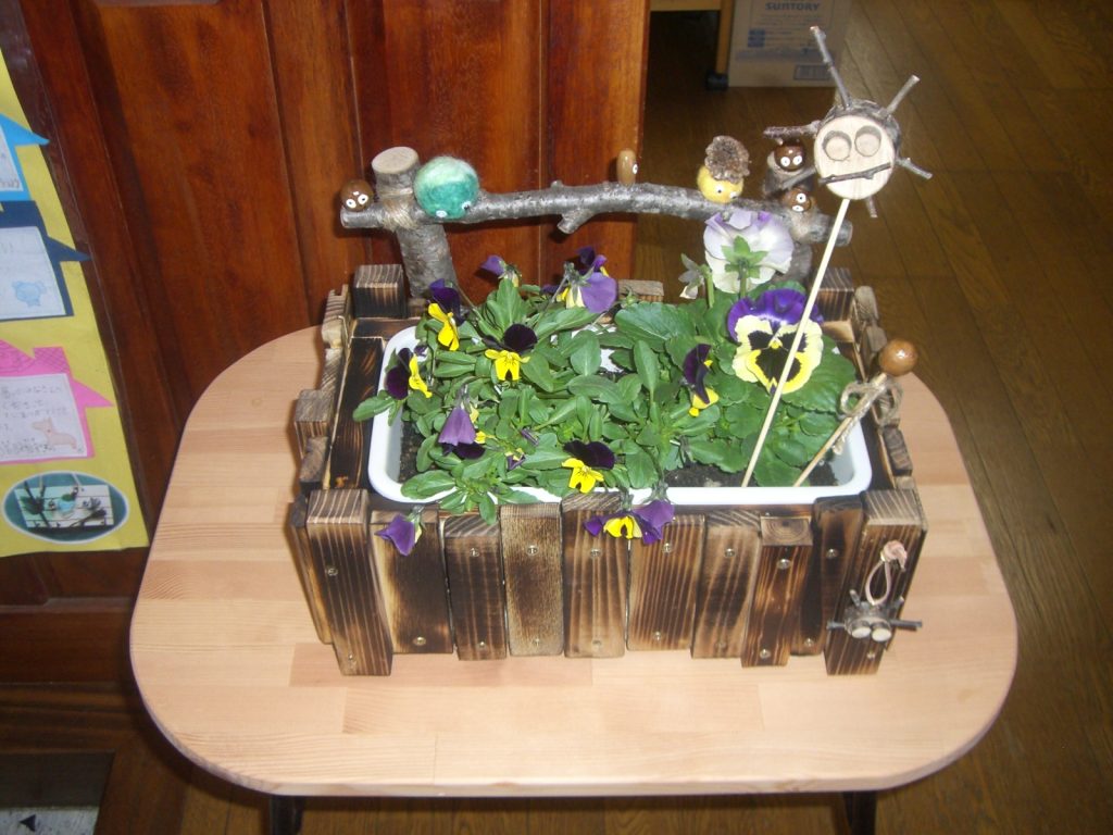 青い風の端材が安曇養護学校の生徒さんたちによって、とても素敵なプランターに生まれ変わりました。