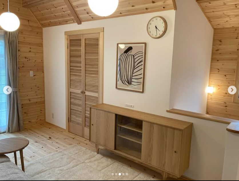 家具セッティング 2025年8月19日 素敵な家具がセッティングされました。家具が入ると一段と見栄えがします。この建物のために施主さんが選んだ家具です。とてもフィットしてますね。これから外構工事に入ります。外構の完成をお楽しみに。