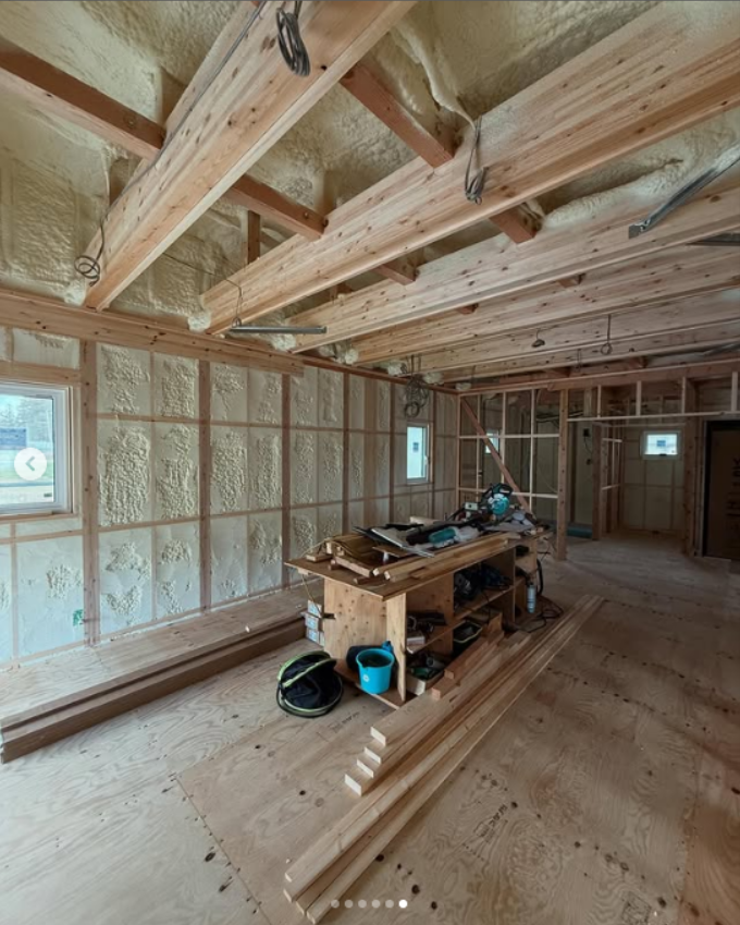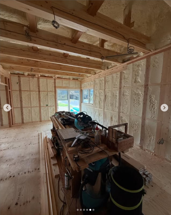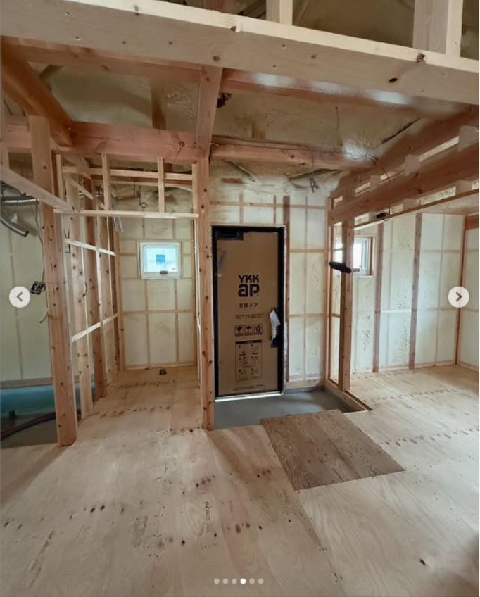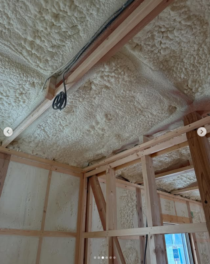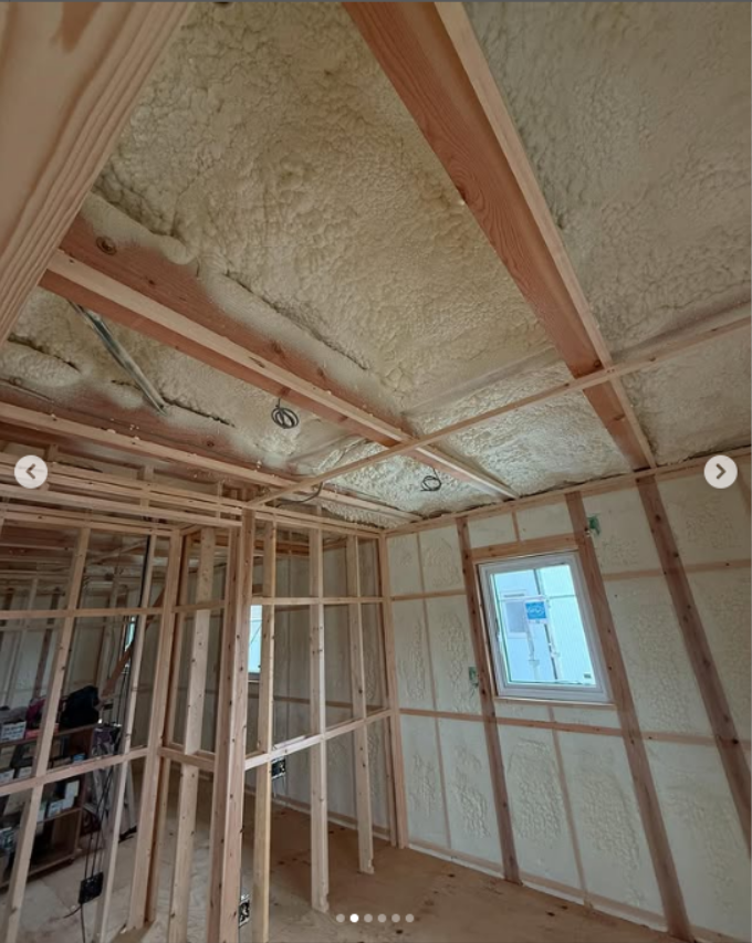 断熱材の現場吹き付け工事が完了です。
