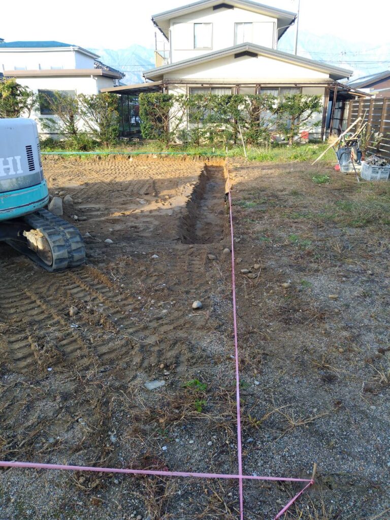 新しい現場の基礎工事が始まりました。