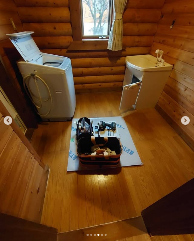床の仕上げを突板貼り合板からパインの無垢板に改修工事。