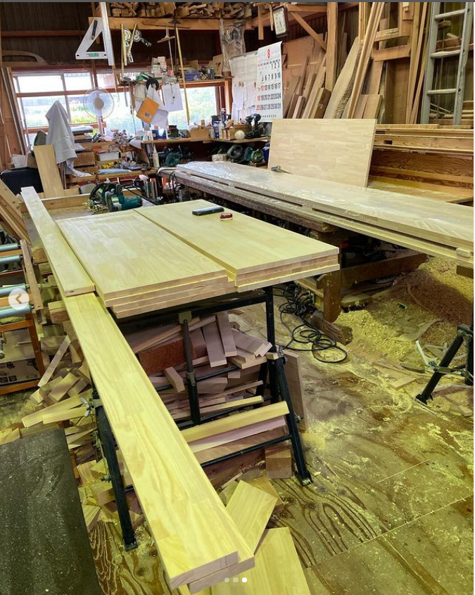 造り付け家具を工場で製作。