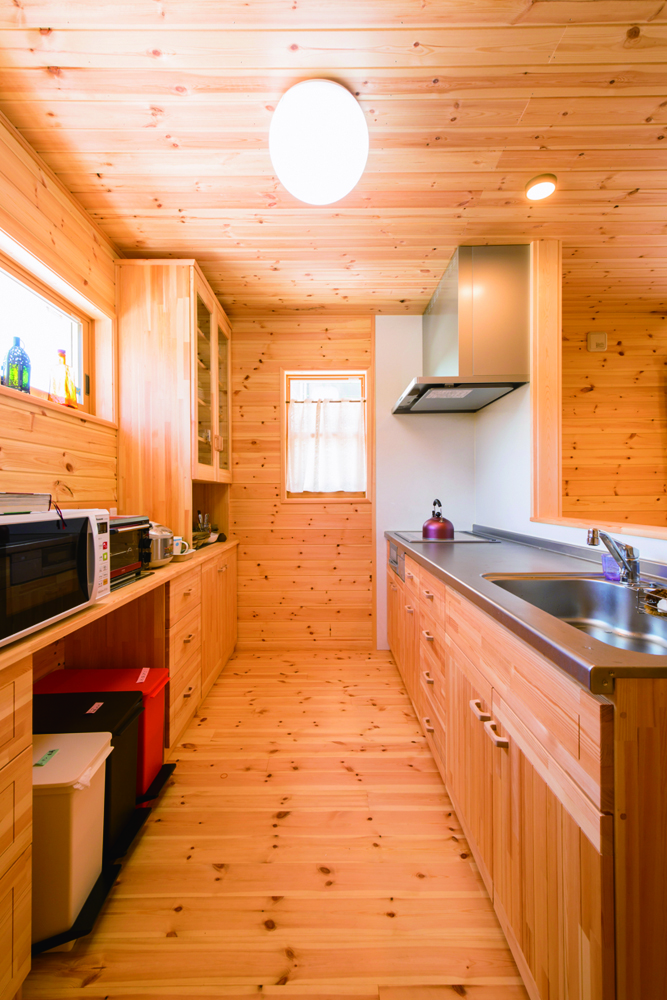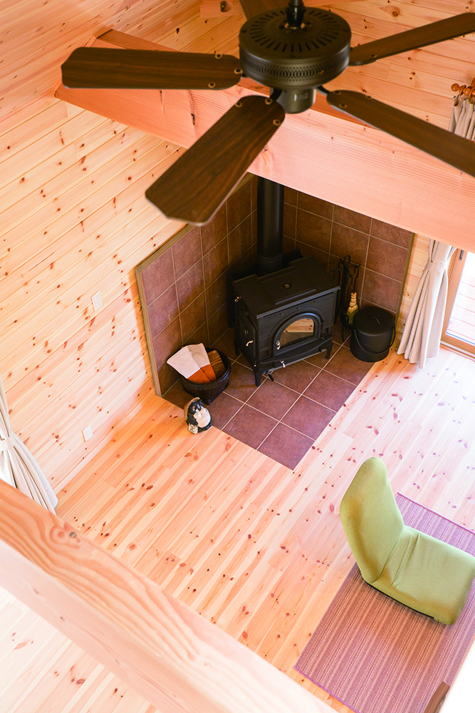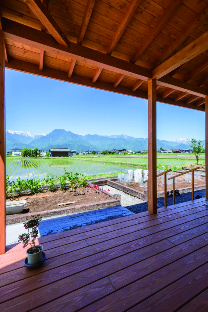 勇壮な北アルプスや白馬三山、さまざまな里山など、大好きな自然が身近なところに贅沢に揃っている池田町は、雪も少なく、都会から移住する人がとても多い町です。板張りの住空間、収納の工夫、薪ストーブ、そして風景を楽しめる大きな開口部や仕切りが少なく開放感ある空間など、施主さまのこだわりが詰まった家になりました。